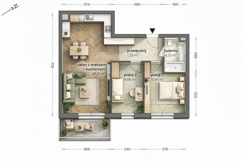 - Powierzchnia:61 m2