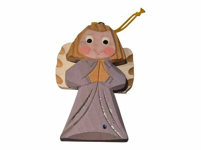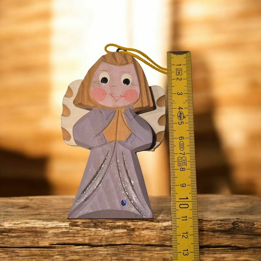 Aniołek drewniany ręcznie rzeźbiony i malowany.Ma sznureczek , można go zawiesić.
