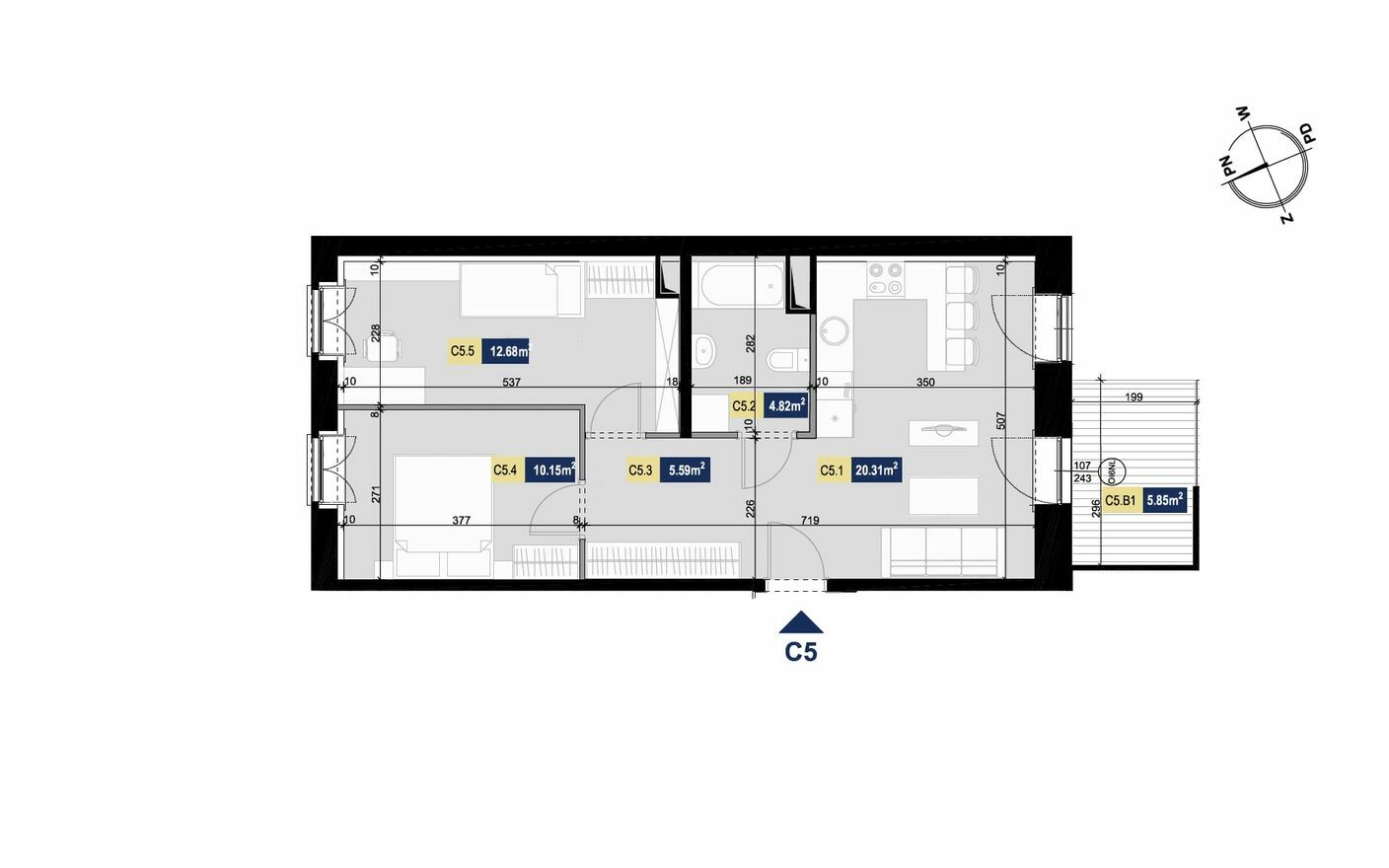 Inwestycja oferuje szeroki wybór funkcjonalnych mieszkań o różnych metrażach i układach.