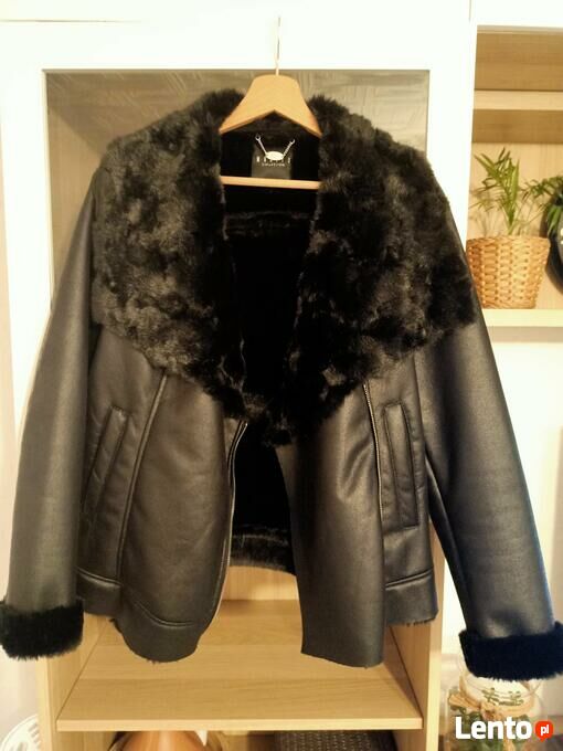 Czarna kurtka, ramoneska na futerku