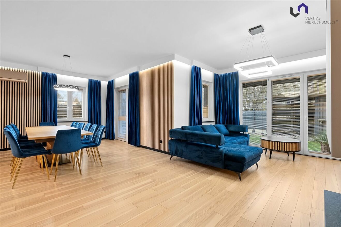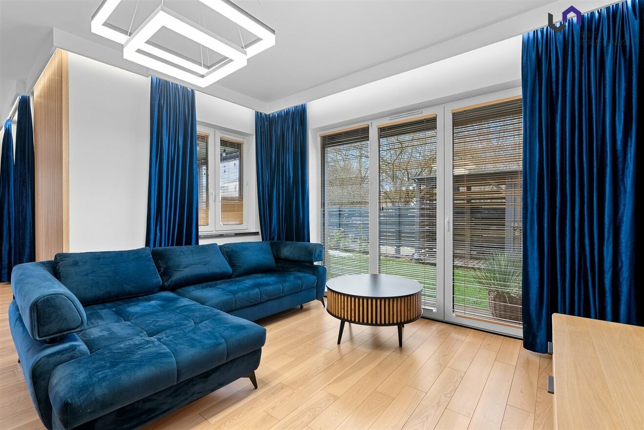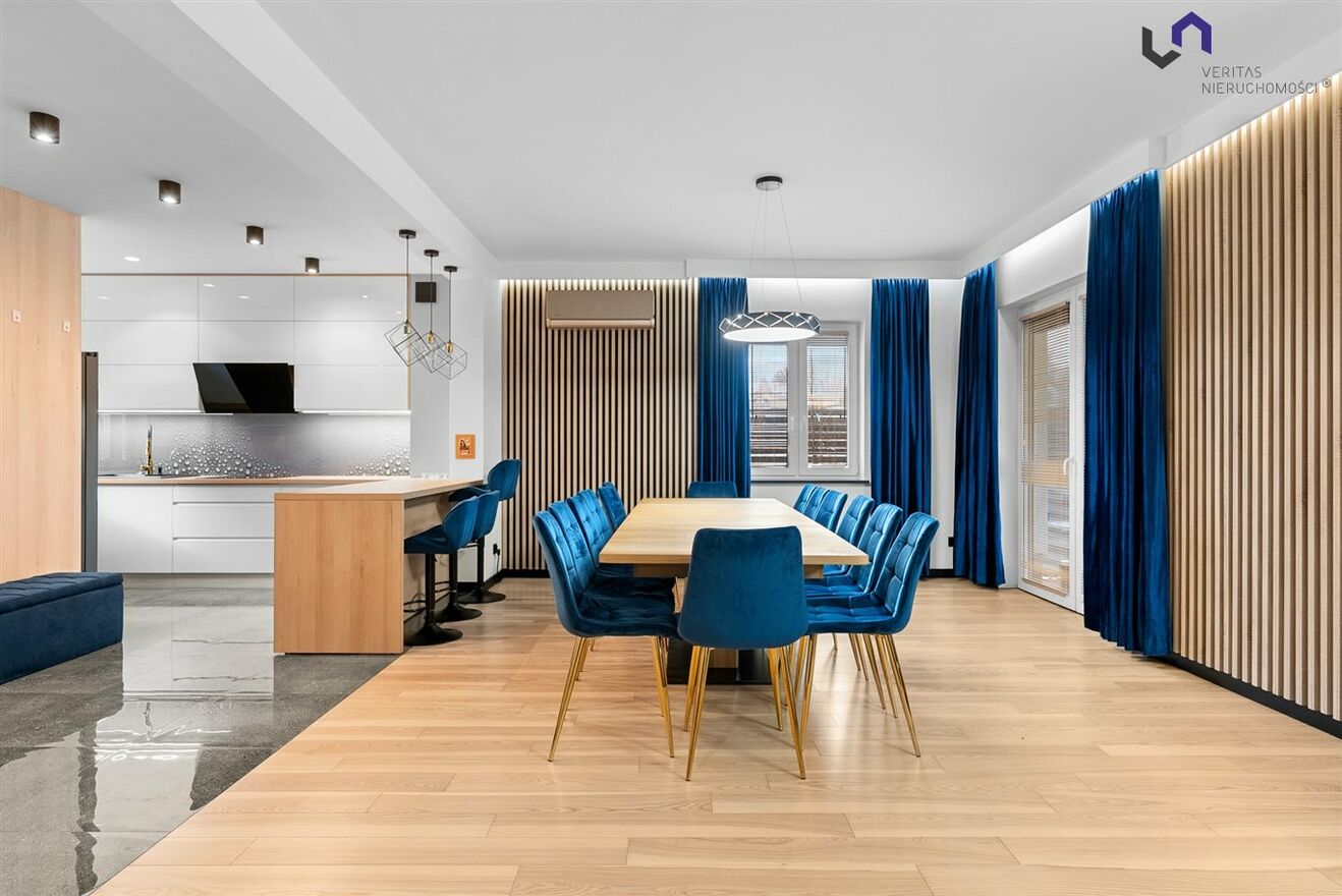 - Kuchnia z oknem z w pełni umeblowana (meble w zabudowie na wymiar) i wyposażona w sprzęt AGD(płyta indukcyjna, zmywarka, lodówka, piekarnik, okap) + wyspa.