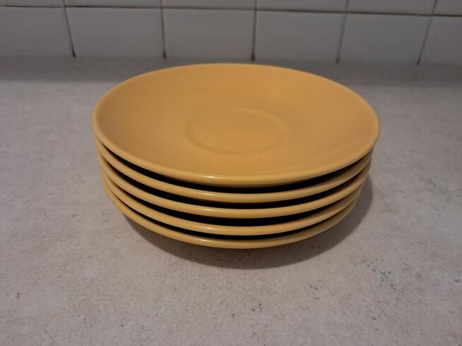Do sprzedania pięć ceramicznych talerzyków – spodeczków pod filiżanki, w kolorze żółtym. Wymiary w cm: wysokość ...