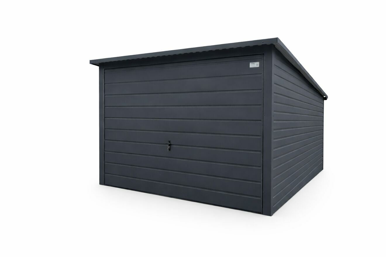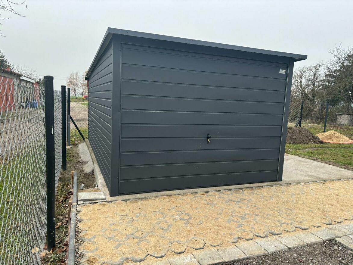 Garaż blaszany 3x5 grafitowy jednospadowy brama uchylna