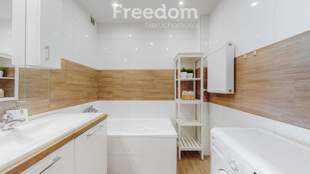 - łazienki z dużą wanną, umywalką i pralką