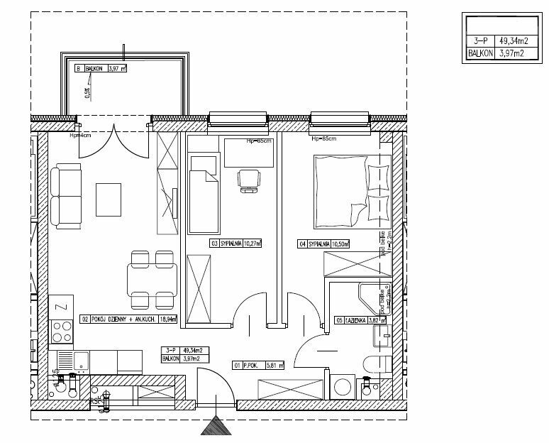 Pokój dzienny/sypialnia (dwa pomieszczenia):