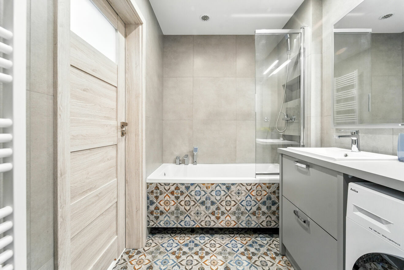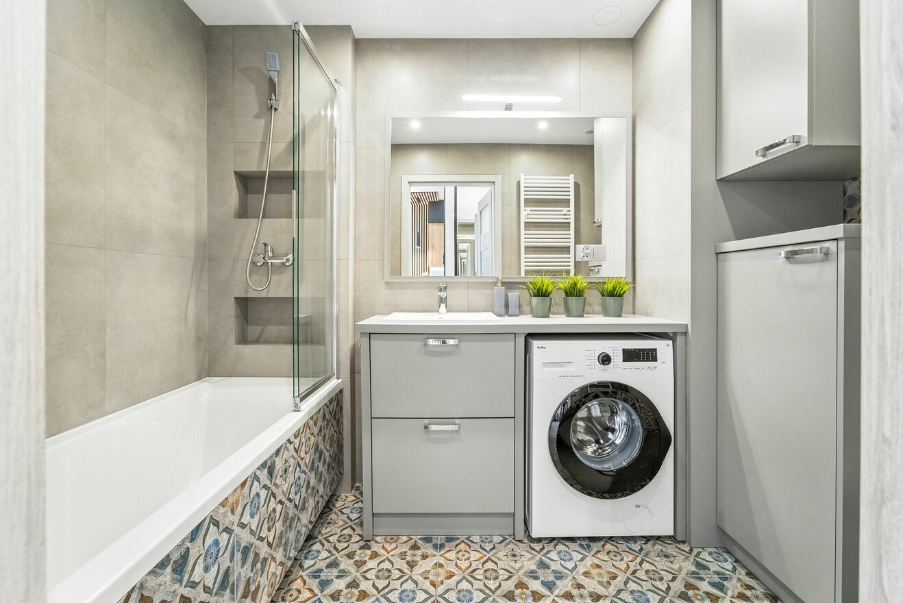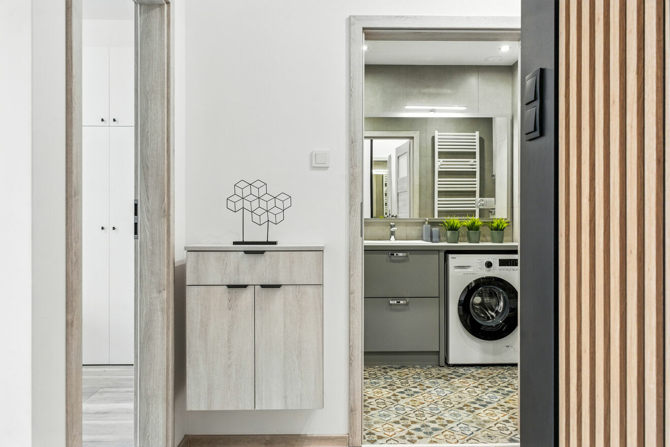 • Łazienka – wygodna, z wanną z prysznicem, pralką i dużą ilością miejsca do przechowywania.