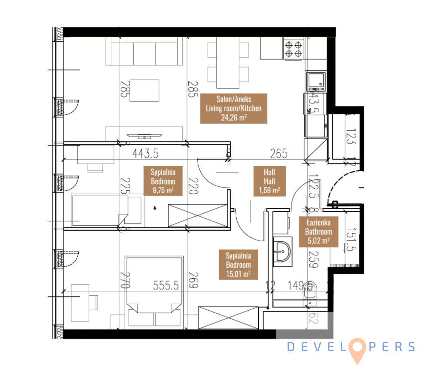 ⦁ nowoczesne mieszkanie w standardzie premium od 25 m2 do 71 m2