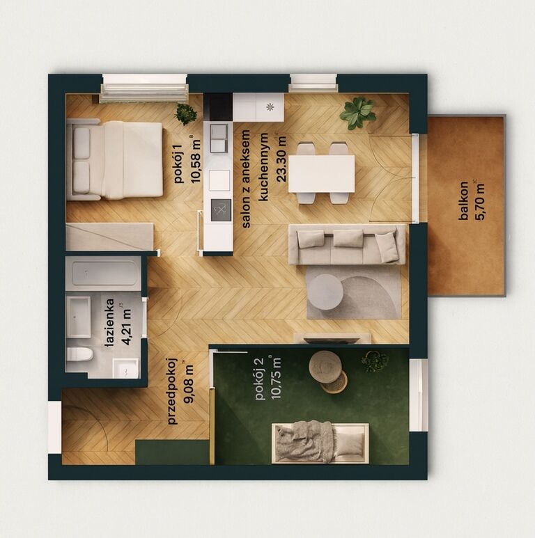 Cena: od 523500 zł do 708500 zł Powierzchnia : od 48 m2 do 66 m2