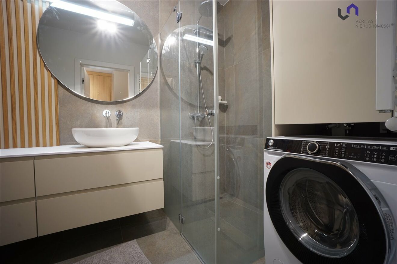 - łazienki wyposażonej w kabinę prysznicową typu walk-in oraz pralkę