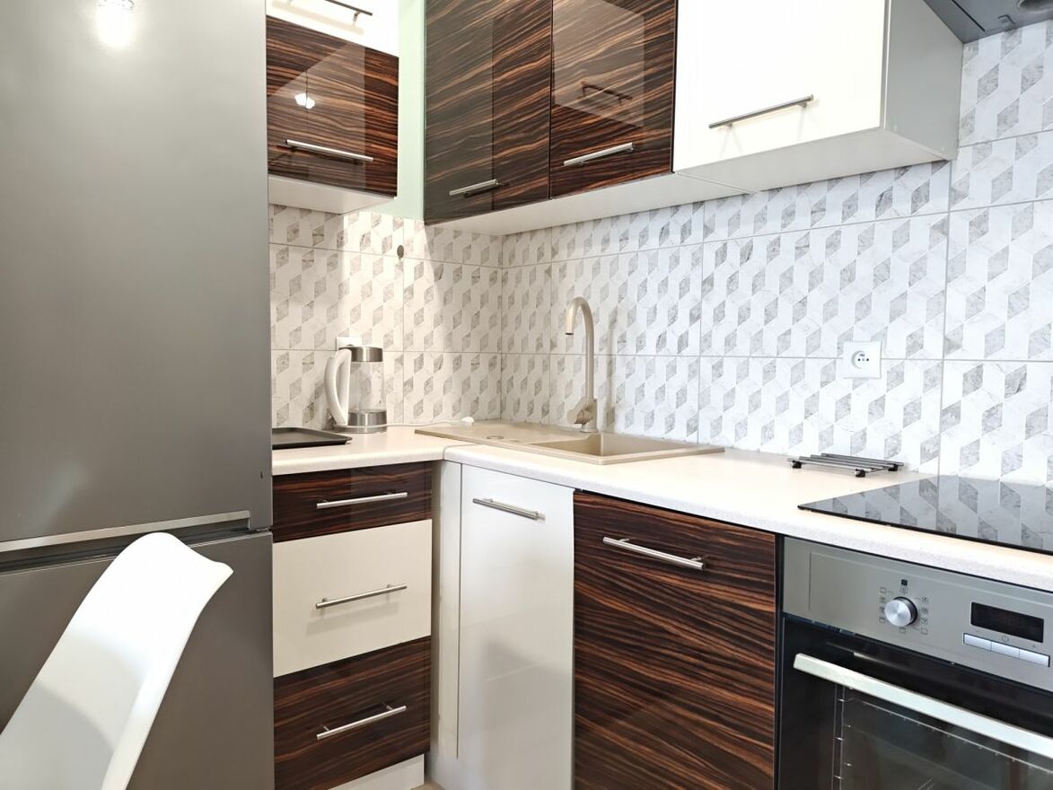 Wnętrze jest jasne i nowocześnie wykończone. Kuchnia stanowi spójną zabudowę z kompletem sprzętów, a salon jest ustawny i funkcjonalny. Mieszkanie jest gotowe do zamieszkania bez dodatkowych nakładów.