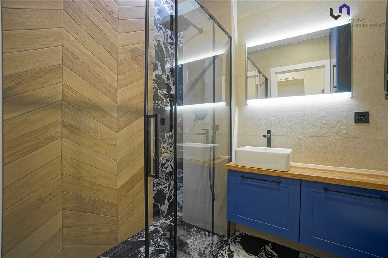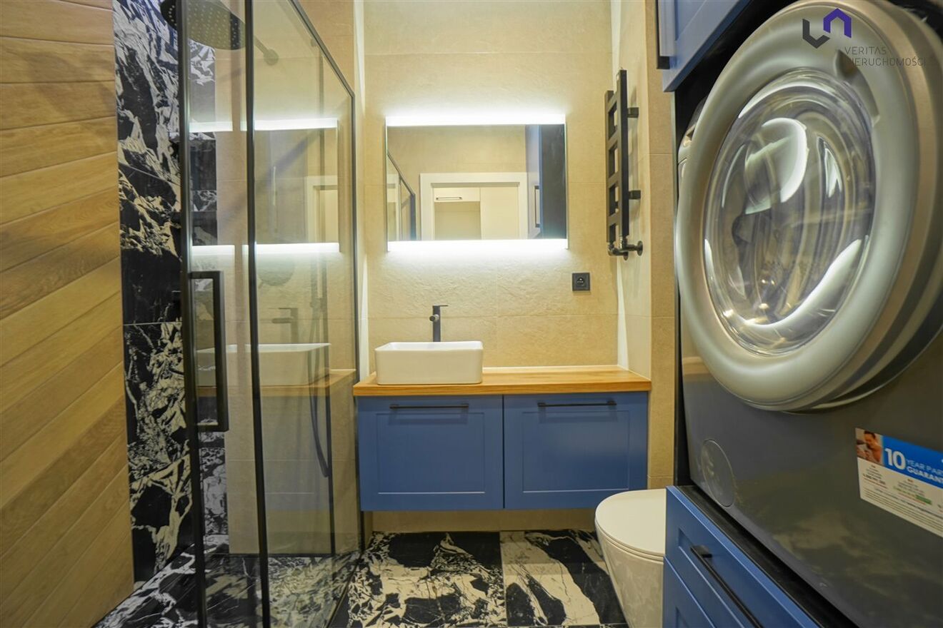 - Łazienki wyposażonej w duży prysznic oraz pralko - suszarkę