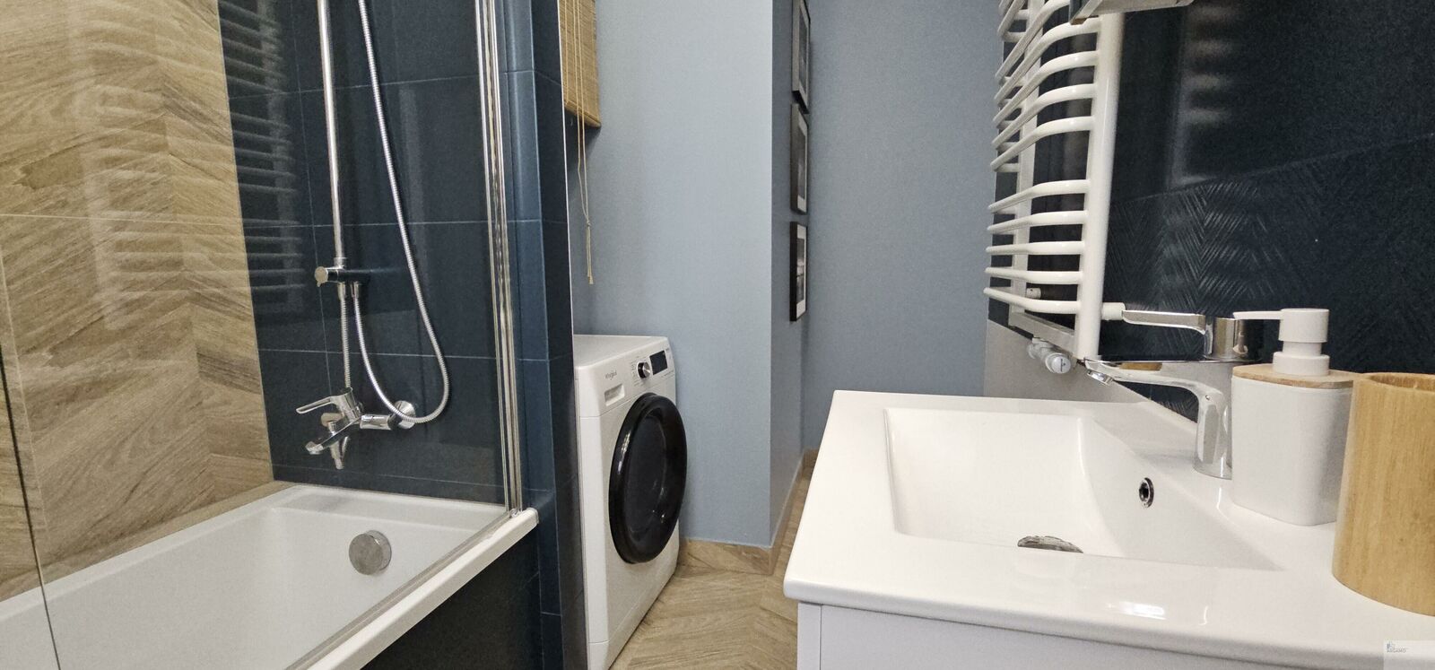 Mieszkanie ma powierzchnie 33 m2, salon z aneksem kuchennym o pow. 19 m2, sypialnia o pow. ponad 8 m2, duża łazienka z wanną i balkon.