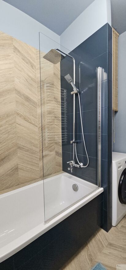 Całe wyposażenie tego mieszkania jest prawie nowe, kuchnia, łazienka, salon, sypialnia. Na miejscu znajduje się niezbędny sprzęty AGD: pralko suszarka, lodówka, płyta indukcyjna, piekarnik, pochłaniacz.