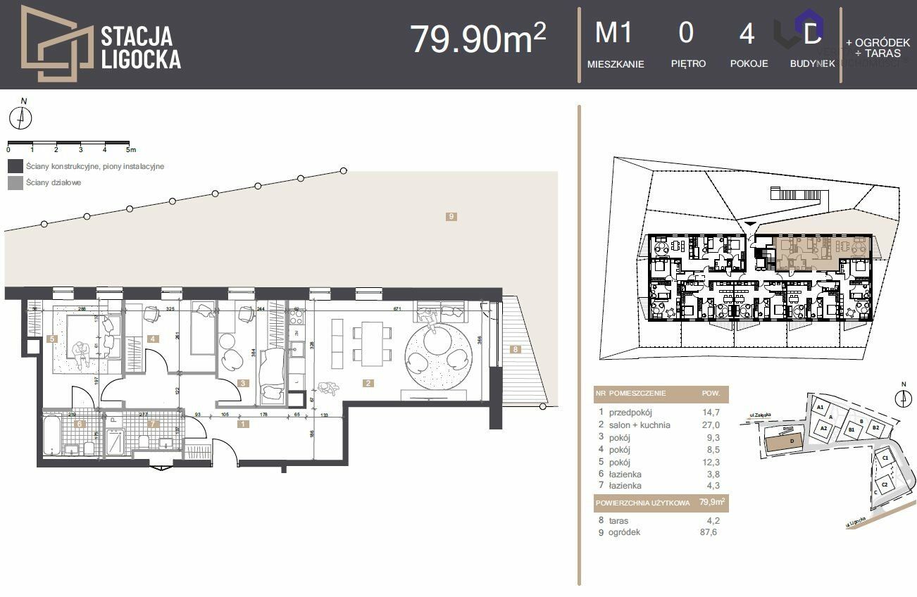 Lokal składa się z 4 pokoi o powierzchni 79,90m2 + TARAS 4,2m2 + OGRÓDEK 87,6m2 - dokładny rzut jest przedstawiony w ofercie!