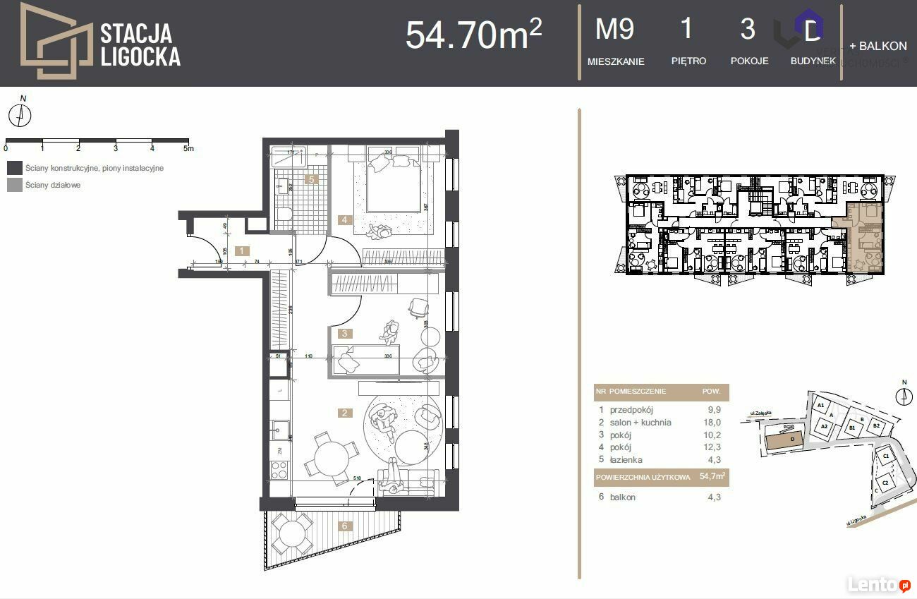Lokal składa się z 3 pokoi o powierzchni 54,70m2 + BALKON 4,3m2 - dokładny rzut jest przedstawiony w ofercie!