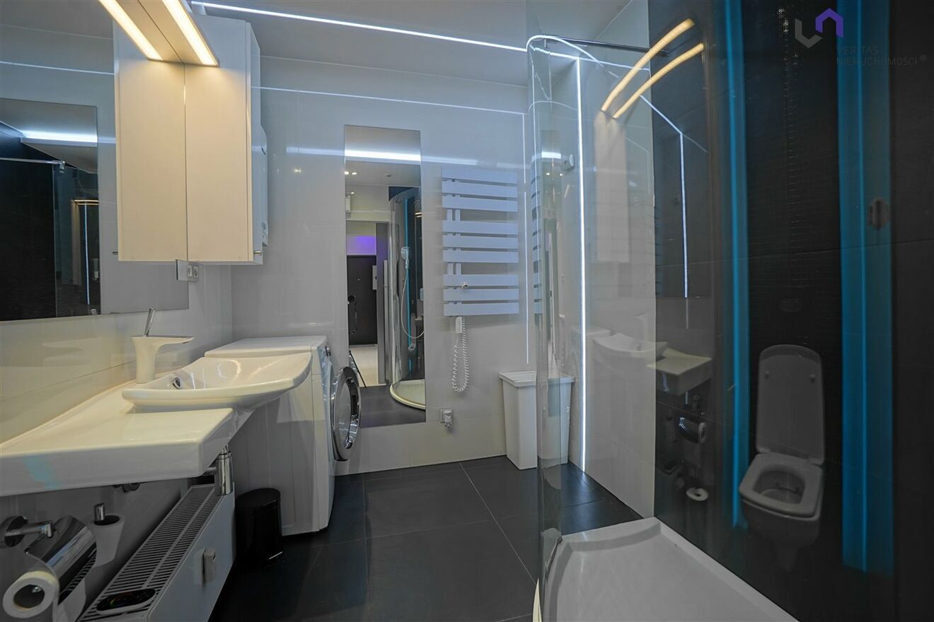 - Łazienki(kabina prysznicowa, pralka, dodatkowe ogrzewanie podłogowe)
