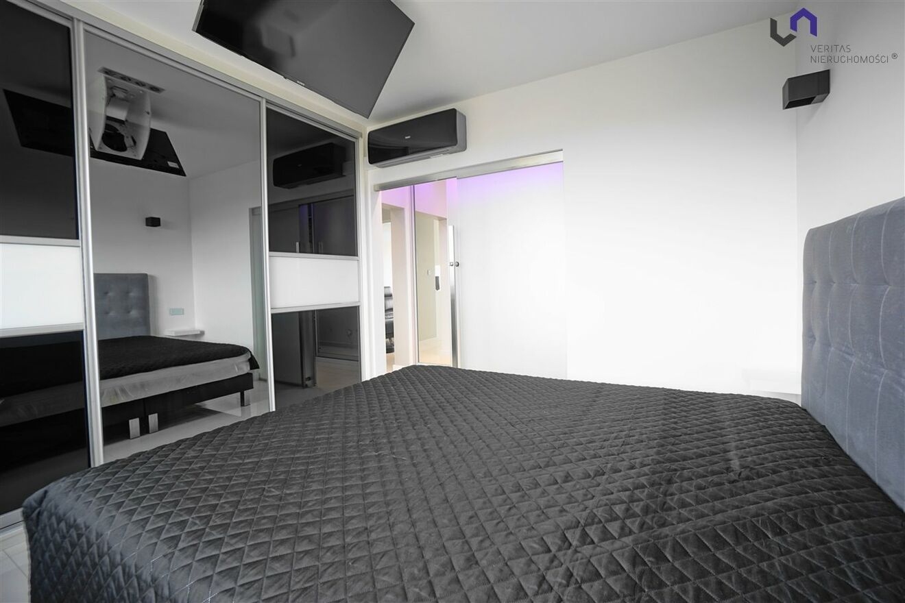- Sypialni(Duże łóżko małżeńskie, szafa zabudowana, klimatyzacja , podwieszany telewizor, dodatkowe ogrzewanie podłogowe)