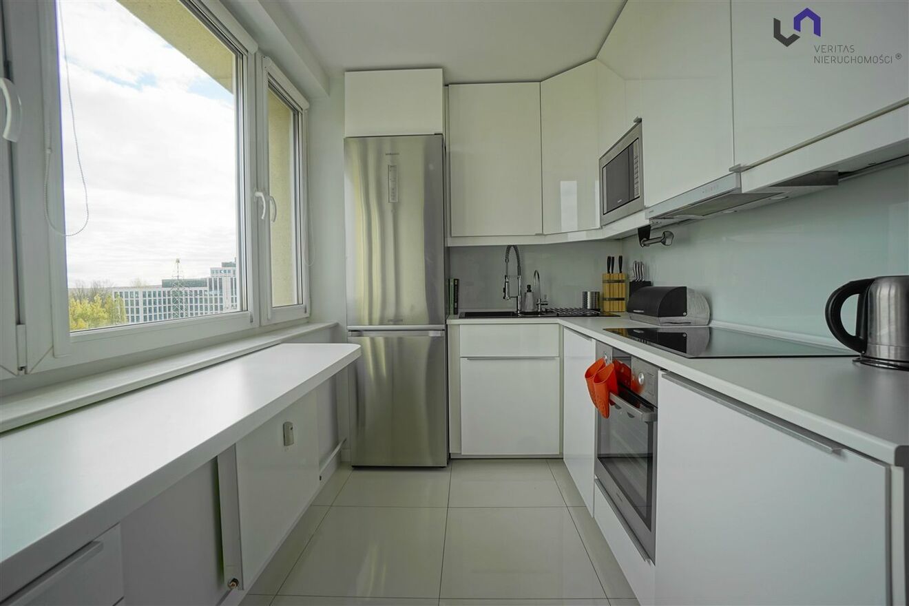 - Oddzielna kuchnia z oknem wyposażona w lodówkę z zamrażarką, płytę indukcyjną, piekarnik, zmywarkę(dużą) + naczynią, sztućce, garnki.