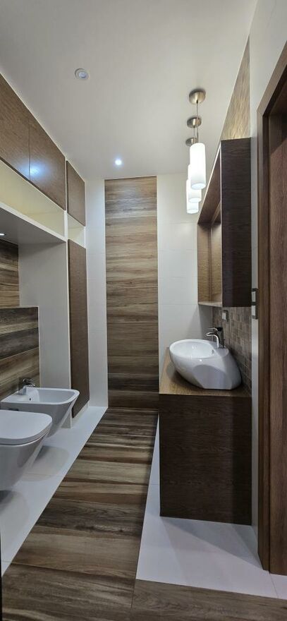 Układ: Jasny salon z aneksem kuchennym i wyjściem na loggię, 2 pełne sypialnie, łazienka (z WC, bidetem i prysznicem walk-in) oraz wspomniana pralnia.