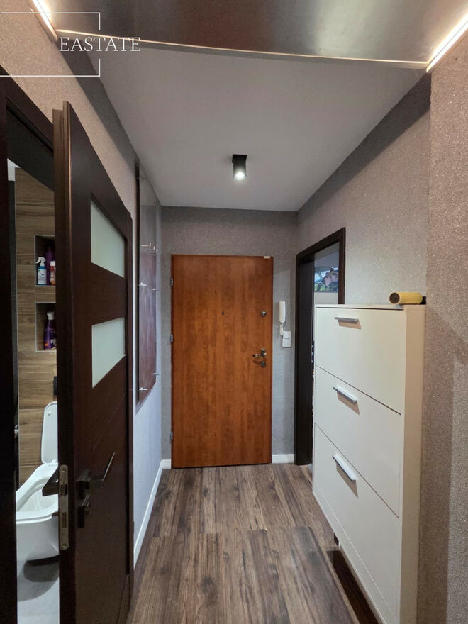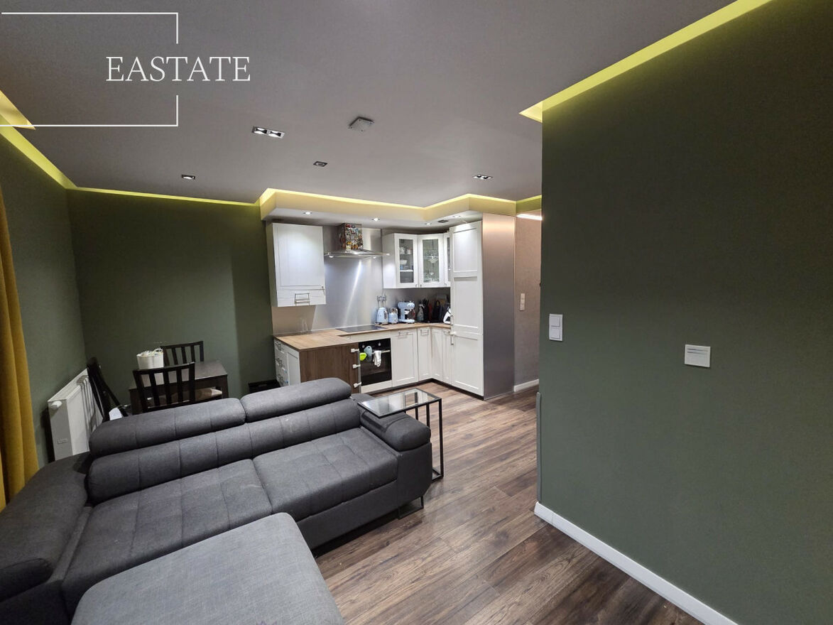 Mieszkanie o powierzchni 47,5 m² składa się z trzech funkcjonalnych pokoi - jeden z nich pełnił wcześniej rolę kuchni, a obecnie została ona przeniesiona do nowoczesnego aneksu w salonie, co tworzy przestronną i komfortową strefę dzienną. Z salonu prowadzi bezpośrednie wyjście na duży ogród, idealny do wypoczynku i spotkań na świeżym powietrzu.