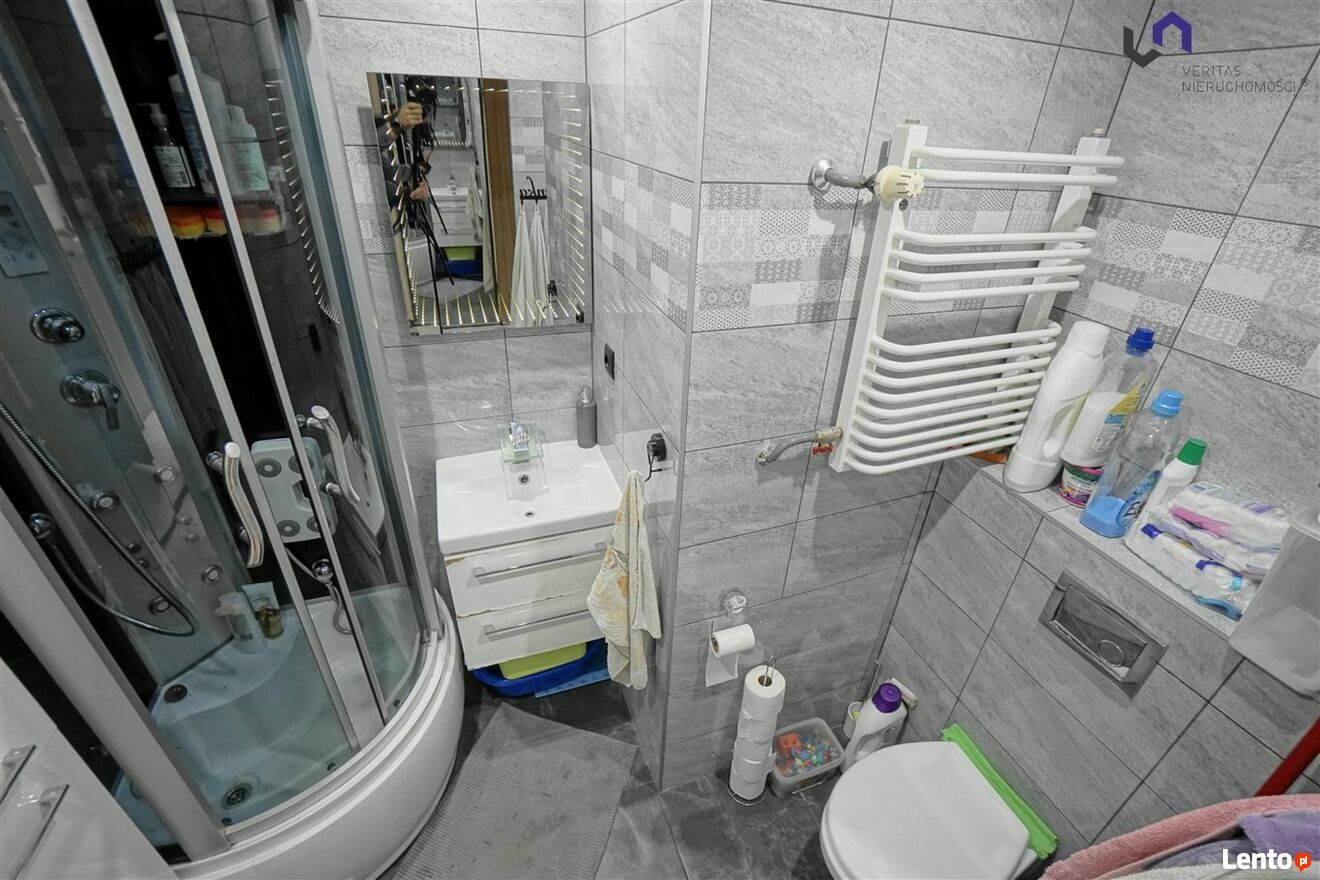 - Łazienki razem z toaletą wyposażonej w kabinę prysznicową