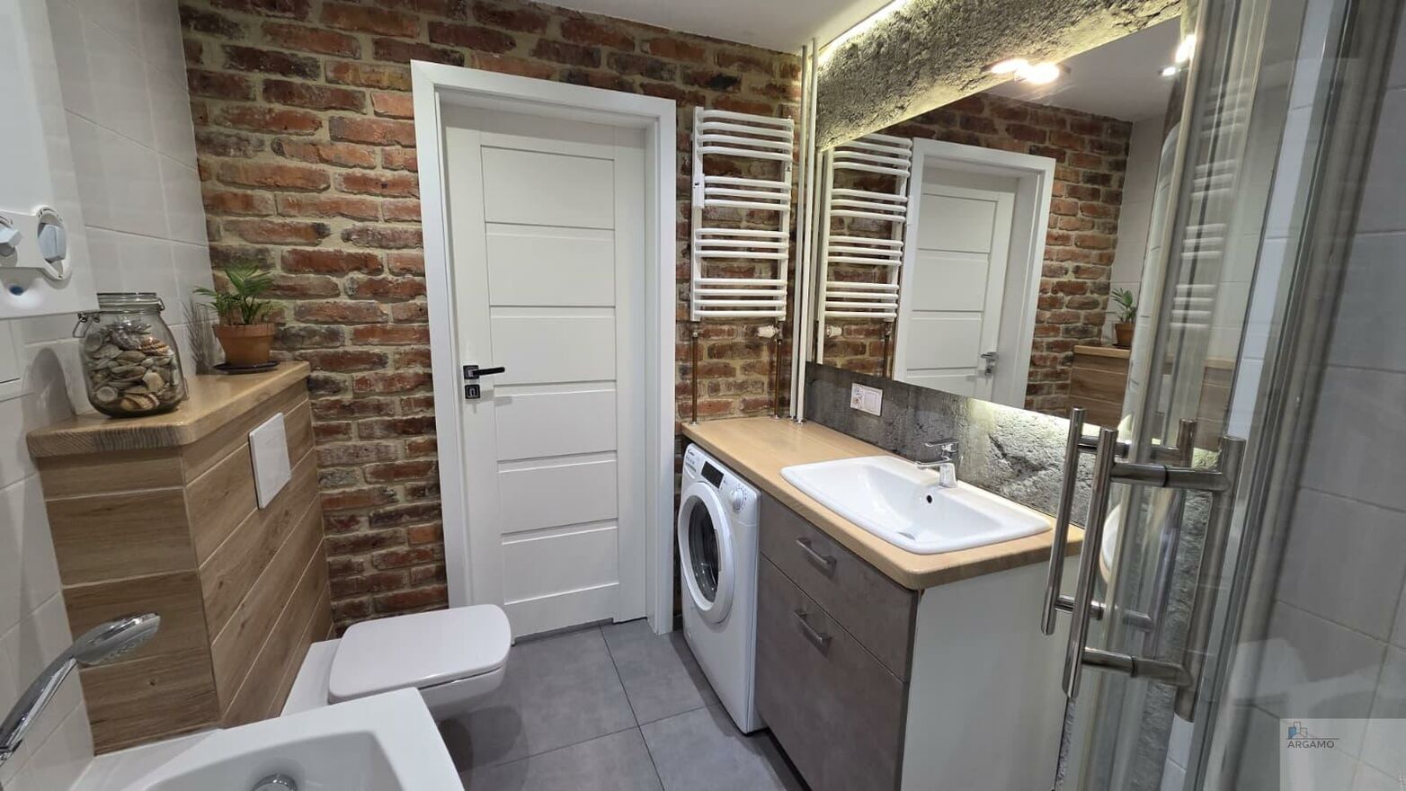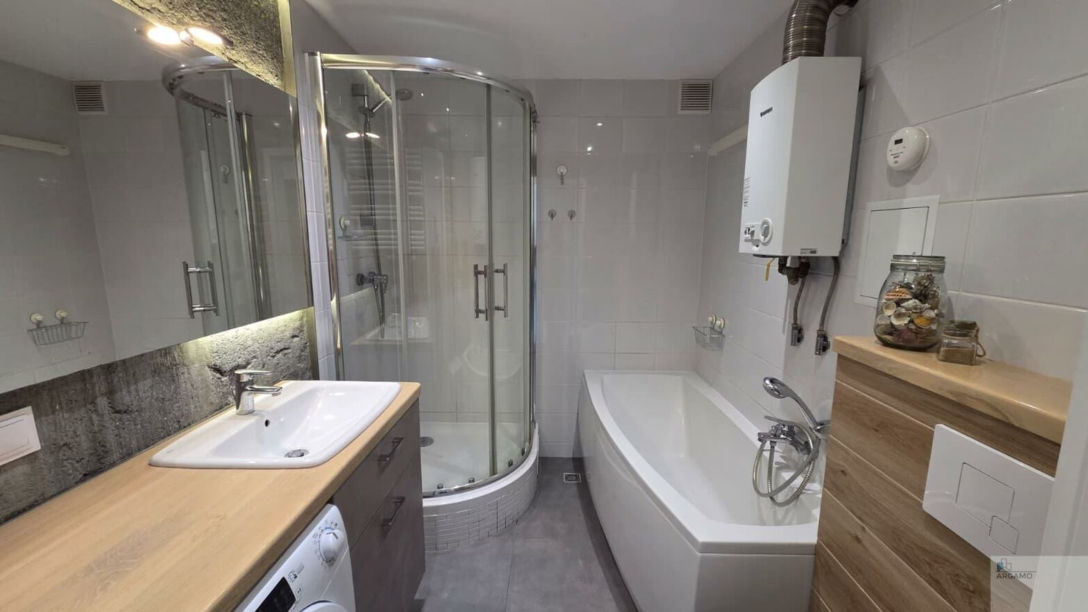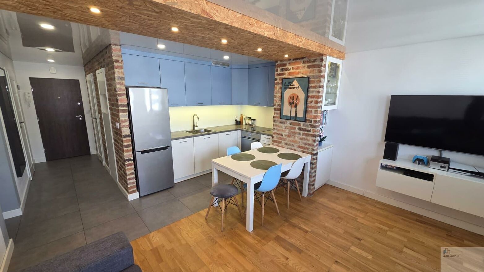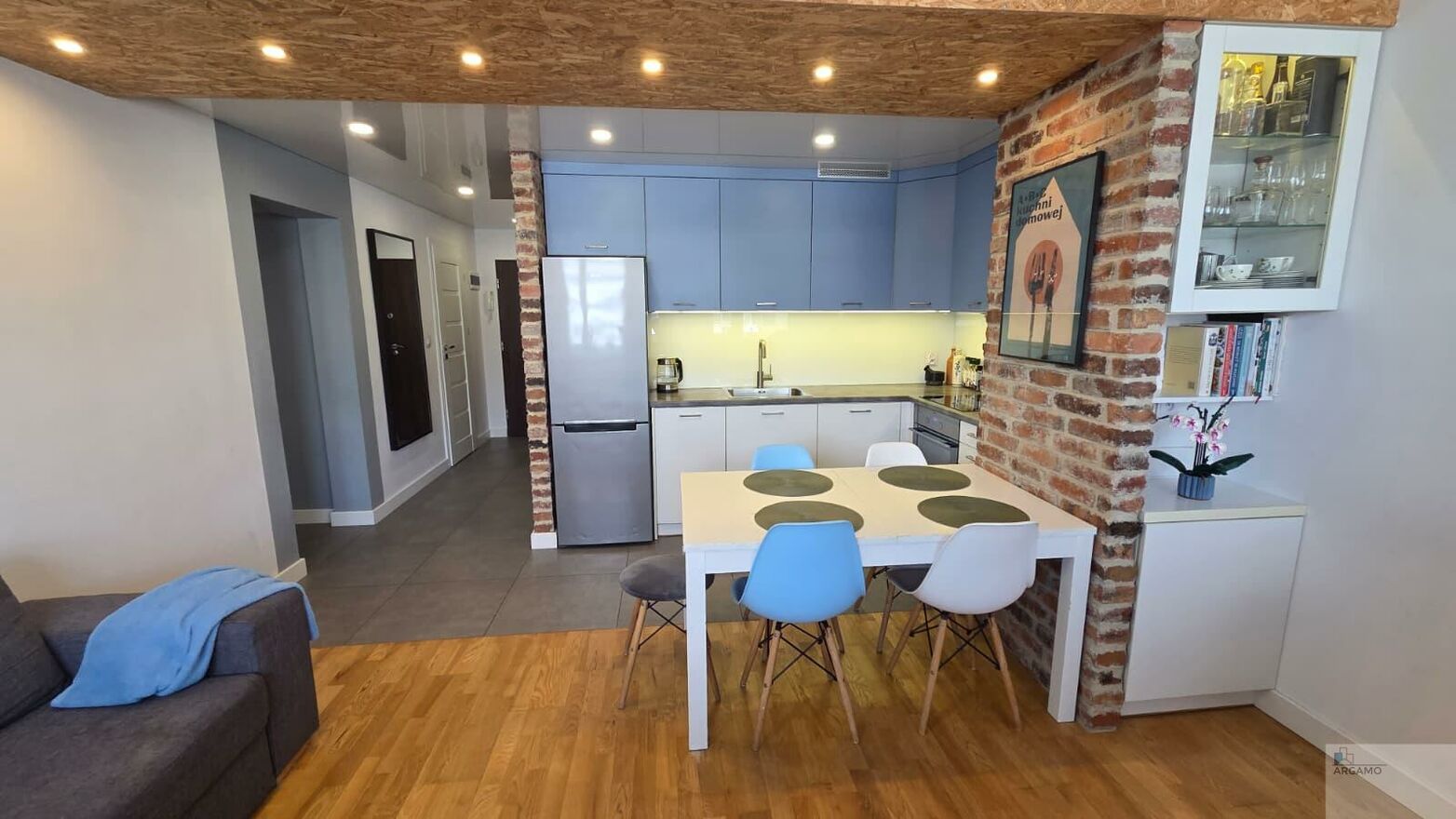 Mieszkanie przeszło generalny remont w 2015 roku. Ostatnie malowanie wykonywane było w 2023 r. Na ścianach gładzie gipsowe, podłoga w pokoju dziennym z desek, w sypialniach z paneli. W pokoju dziennym, kuchni oraz przedpokoju sufity napinane. Duże okna PVC. Kuchnia w zabudowie z pełnym wyposażeniem: piekarnik, lodówko-zamrażarka, zmywarka, płyta indukcyjna. Łazienka z WC prysznicem oraz wanną i zabudową pod pralkę. Część lub wszystkie meble mogą pozostać w mieszkaniu do dyspozycji kupującego.