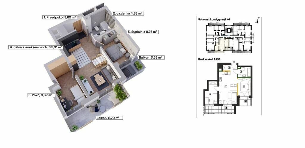 Cena: od 445000 zł do 602000 zł Powierzchnia : od 43 m2 do 59 m2