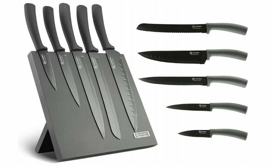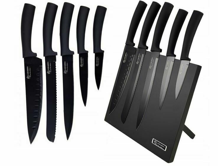 ZESTAW OSTRYCH NOŻY KUCHENNYCH KOMPLET - 6 ELEMENTÓW - BLOK MAGNETYCZNY