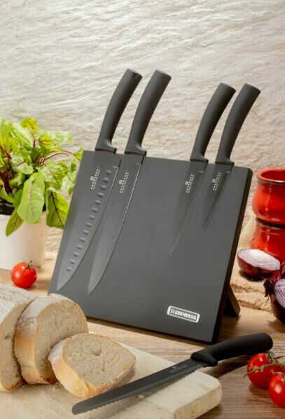 Ułatwia to praktyczny i estetyczny blok magnetyczny. Umieszczone w nim noże po wykonanej pracy świetnie się prezentują stanowiąc ozdobę Twojej kuchni.