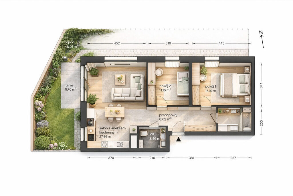 • Przestronny ogród 45m2
