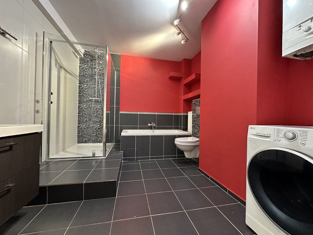kuchnia aneksie oraz dużej łazienki z wanną oraz prysznicem. Jedna