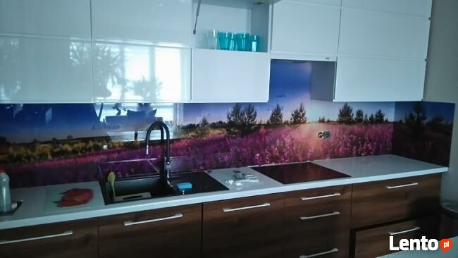 Panel szklany do kuchni, łazienki,szafy przesuwnej na wymiar.Szklo w jednlitym kolorze oraz dowolnym nadrukiem:)