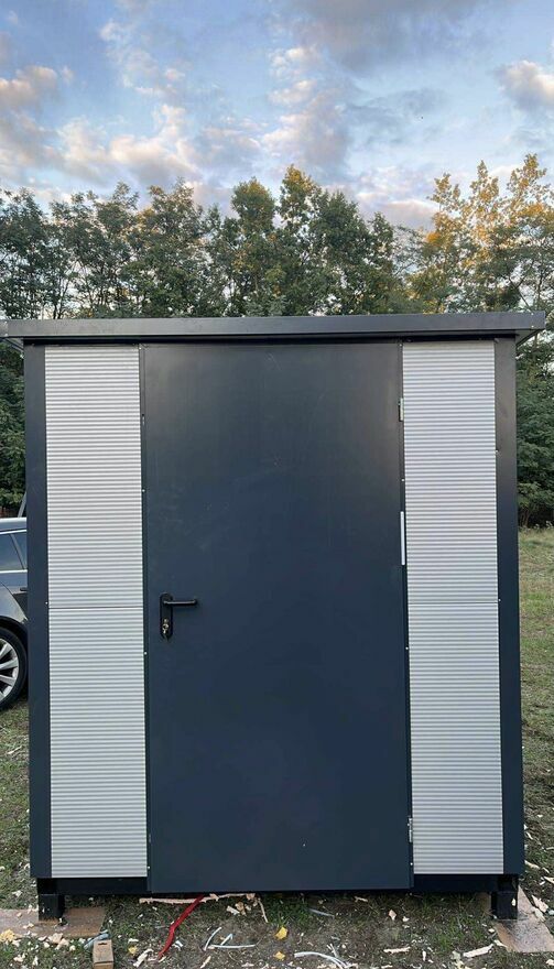 Najszybszy kontakt za pomocą wiadomości na platformie WhatsApp- +48 725 - pokaż numer telefonu -Domek sanitarny 180x180 cm – gotowa łazienka z prysznicem i WC