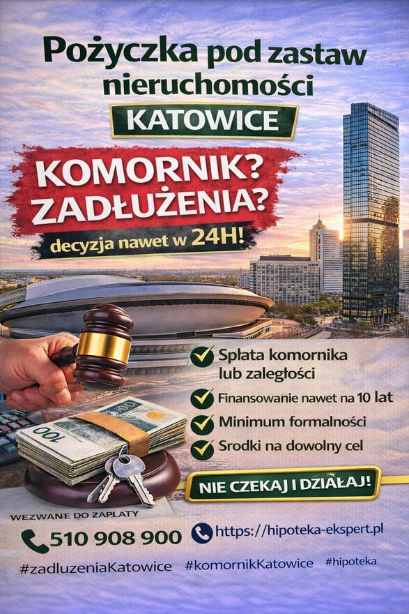 Masz komornika, zaległe kredyty lub chwilówki i bank odmawia finansowania?Jeśli posiadasz nieruchomość w Katowicach lub na Śląsku, możesz uzyskać pożyczkę pod zastaw nieruchomości nawet na 10 lat i uporządkować swoją sytuację finansową.