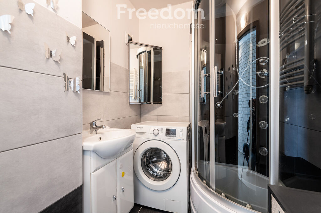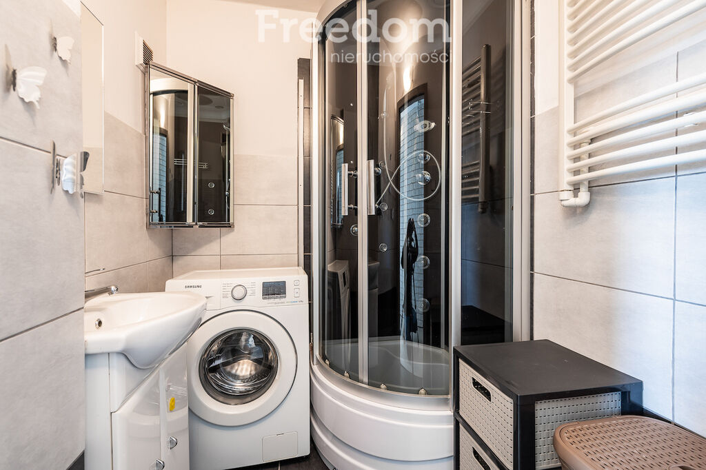 W łazience znajduje się prysznic oraz pralka. WC oddzielne. Salon