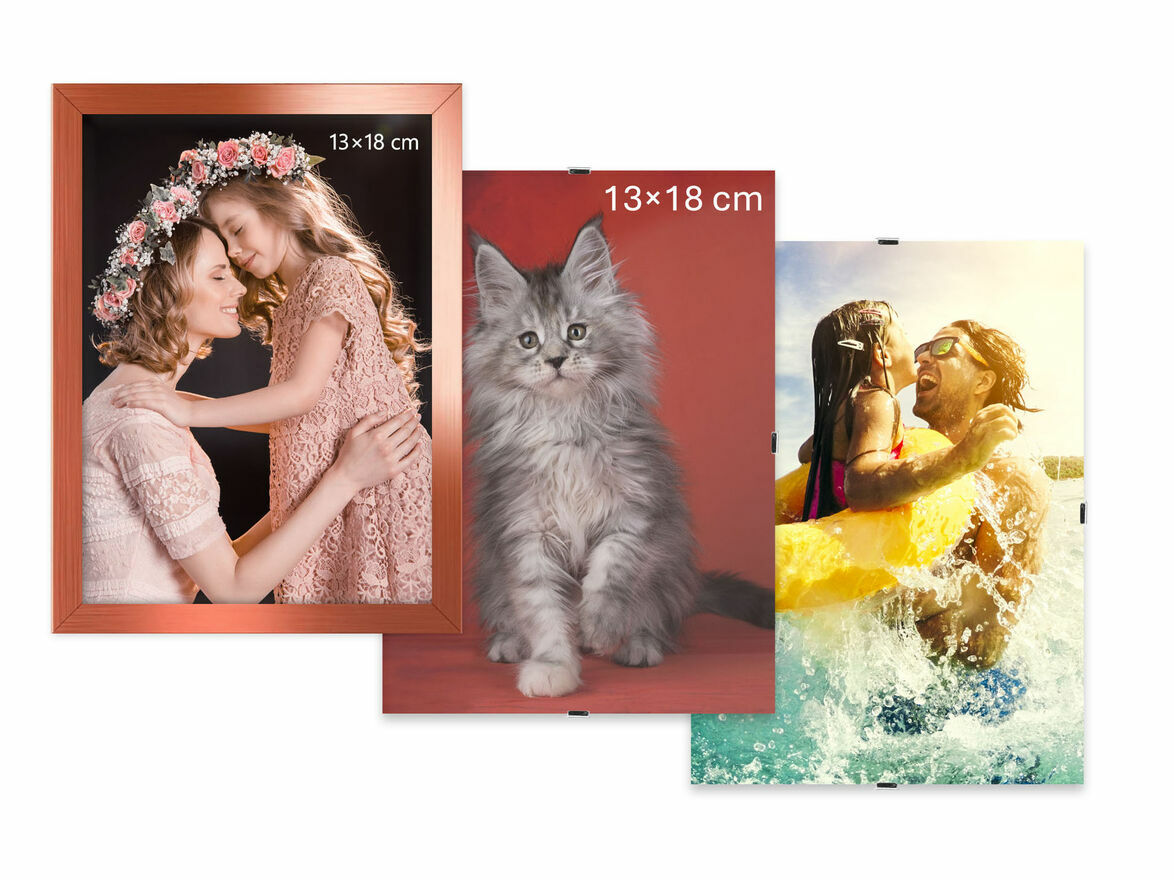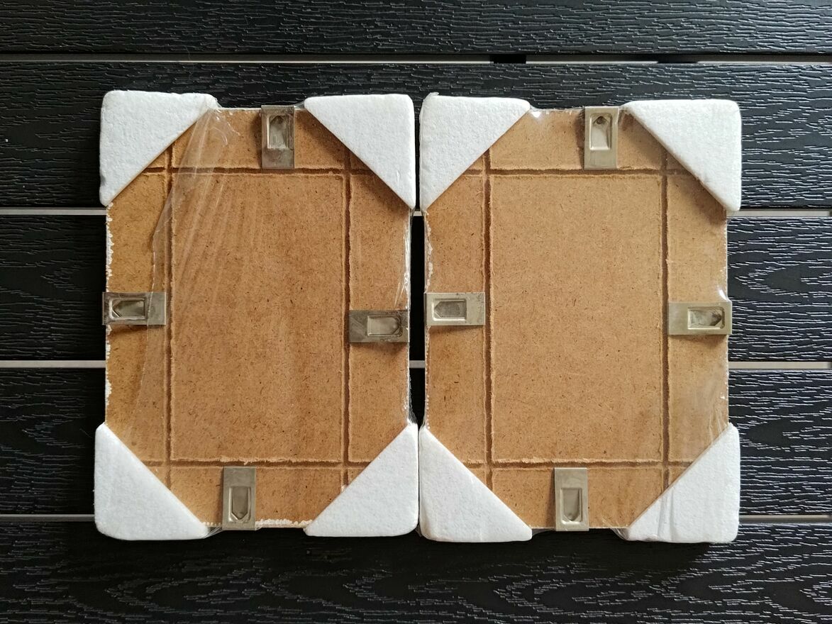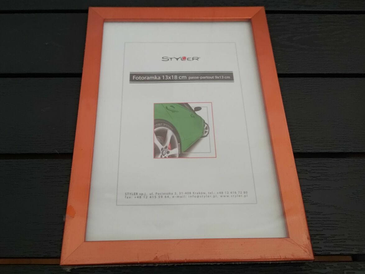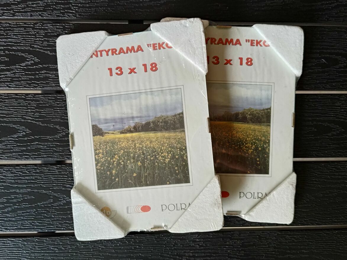 Nowe ramki na zdjęcia, antyramy, fotoramki w formacie 13×18 cm, nieużywane, oryginalnie zapakowane, nieuszkodzone.Jedna ramka w kolorze miedzianym, z efektem połysku, metalizowana, z możliwością powieszenia w pionie lub postawienia w pionie lub poziomie. Dwie antyramy bez obwódki zewnętrznej, z możliwością powieszenia w pionie lub poziomie.