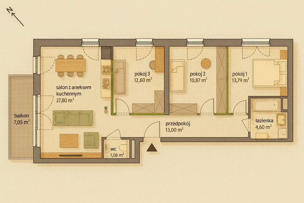 funkcjonalne układy 2-, 3- i 4-pokojowe, przestronne balkony i