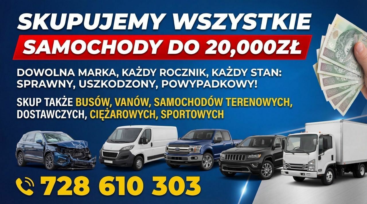 • Skup aut osobowych, dostawczych i terenowych – bez względu na stan.