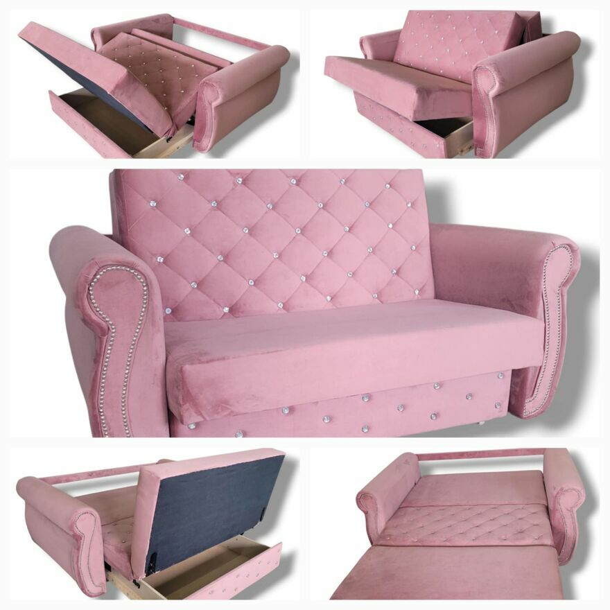 Kanapa w stylu Glamour , wykończona kryształami , pasująca do wnętrza nowoczesnego , jak i klasycznego!