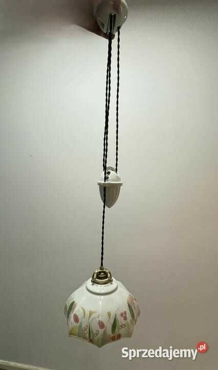 Stara lampa wisząca kuchenna z przeciwwagą porcelanową