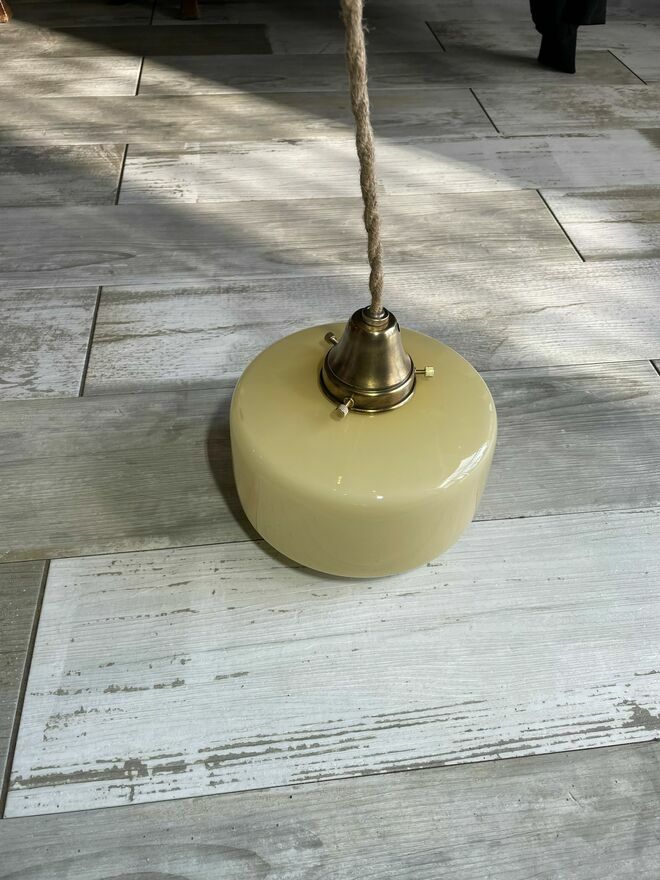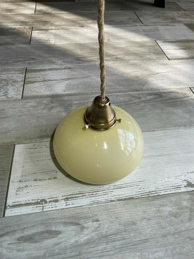 Stara lampa wisząca z kloszem. W pełni sprawna, oprawka na gwint E27 i mosiężny koszyczek. Klosz typu beret - średnica ok 23 cm wysokość 12 cm Lampę sprzedaję z jednym kloszem do wyboru - kształt i kolor klosza.cena 180 zł za lampę z 1 kloszem