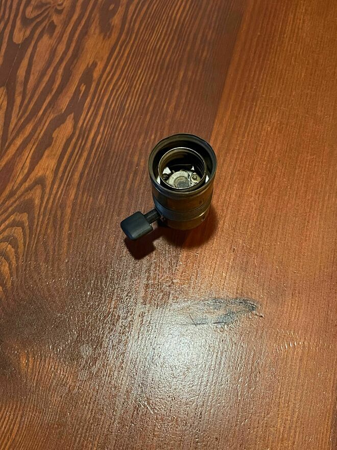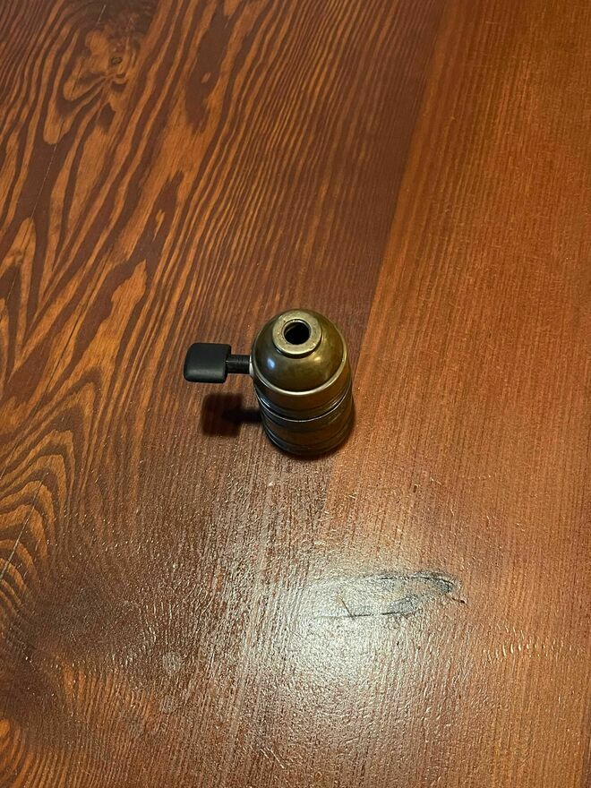 Stara mosiężna oprawka z wyłącznikiem, gwint żarówki E27, kompletna i sprawna. Oprawka była naprawianacena 65 zł dotyczy 1 sztuki
