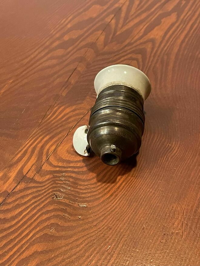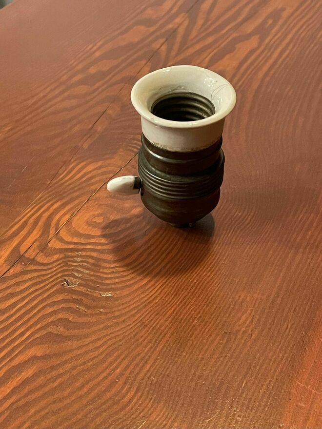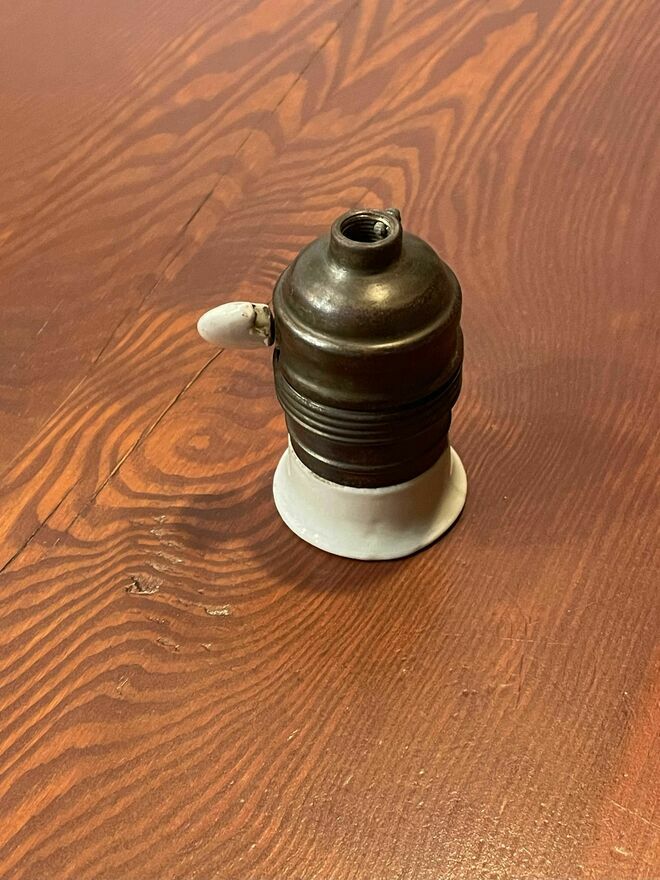 Stara oprawka stalowa z porcelanką i wyłącznikiem E27