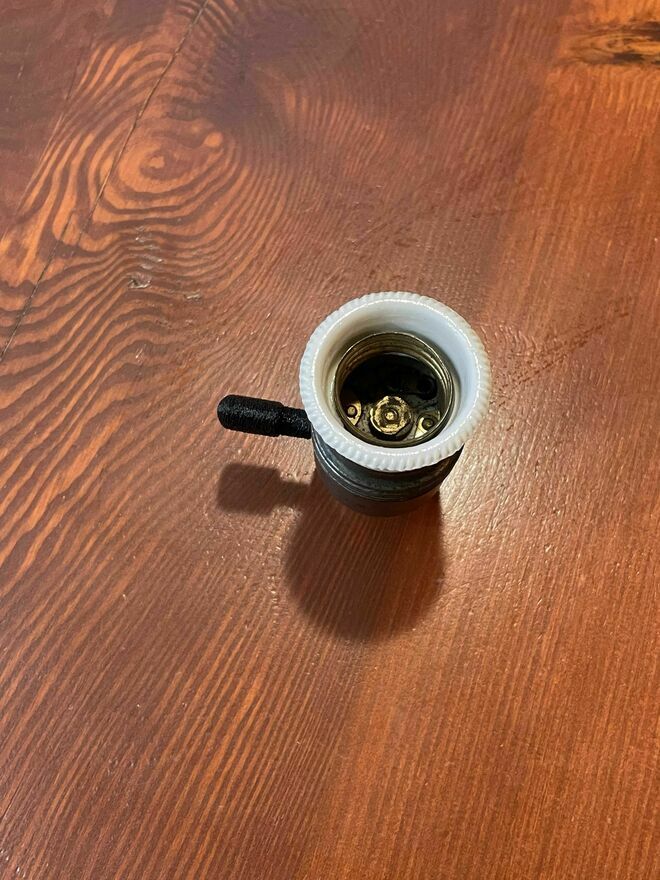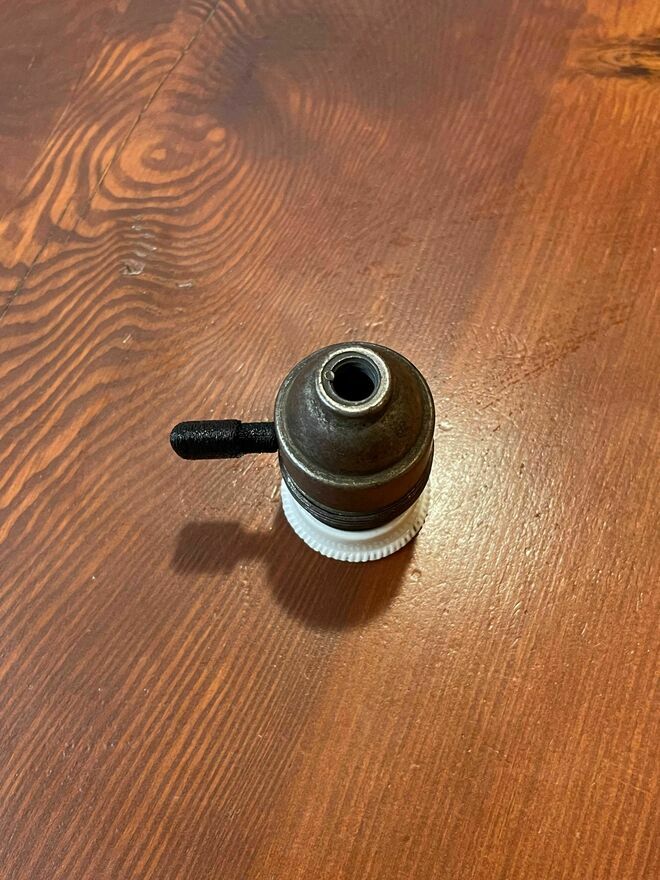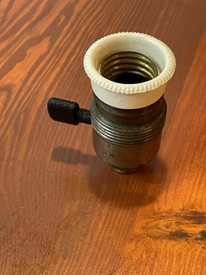 Stara oprawka stalowa z porcelanką i wyłącznikiem E27