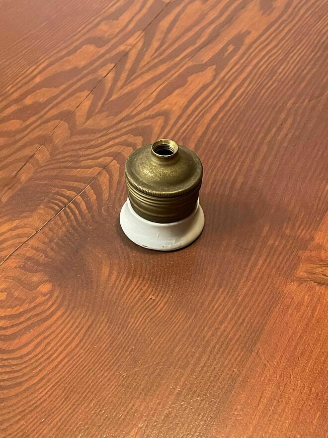 Stara oprawka z gwintem E27 mosiężna z porcelanką