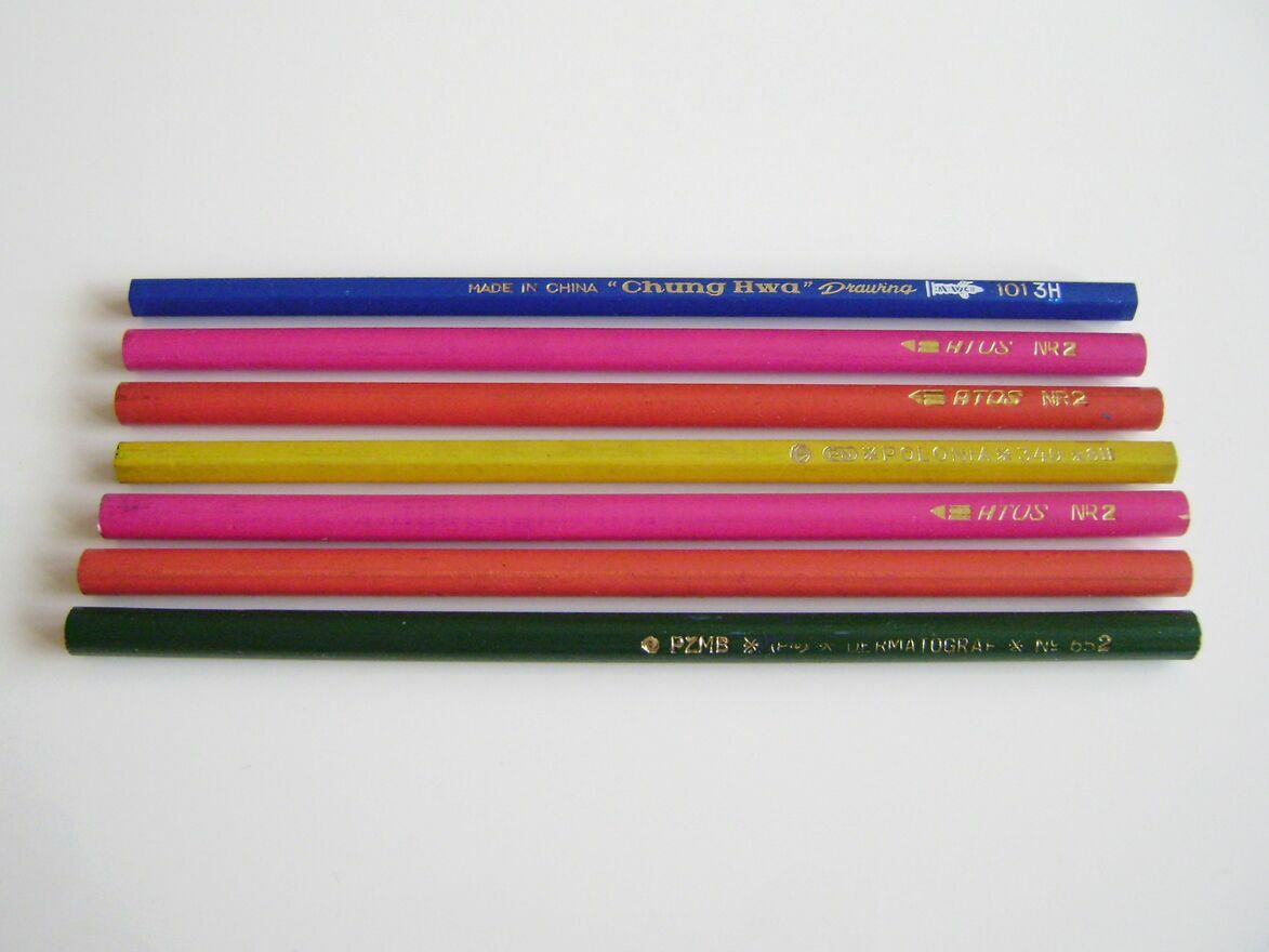 Sprzedam stare ołówki z PRL-u. Zestaw 6 sztuk.W zestawie: ATOS 3 szt., Chung Hwa 1 szt., POLONIA 1 szt., Dermatograf 1 szt.