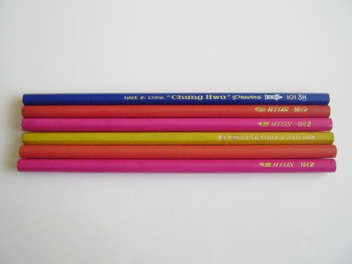 Sprzedam stare ołówki z PRL-u. Zestaw 6 sztuk.W zestawie: ATOS 3 szt., Chung Hwa 1 szt., POLONIA 1 szt., Dermatograf 1 szt.