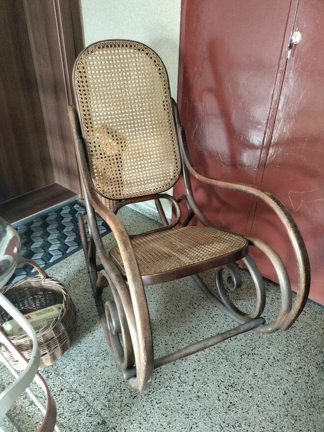 Stary fotel bujany z drewna lata 70 antyk