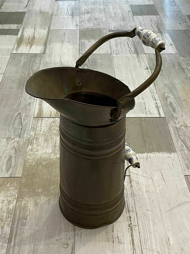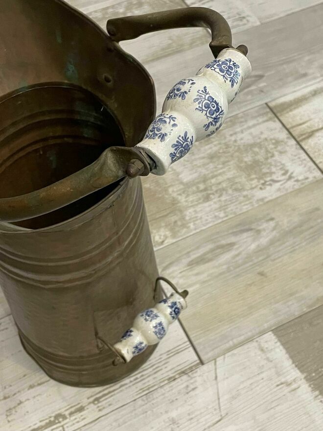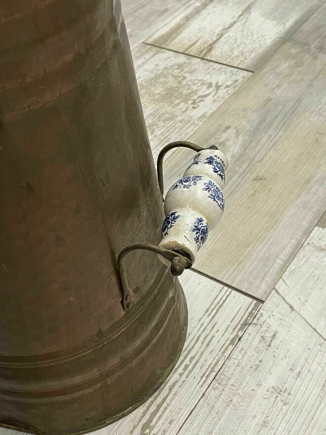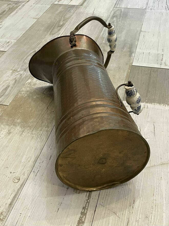 Dzban miedziany - stojak na parasolki. Stan jak na zdjęciach, wys. około - 50 cm. średnica u podstawy 20 cm, uchwyty ceramicznecena 190 zł