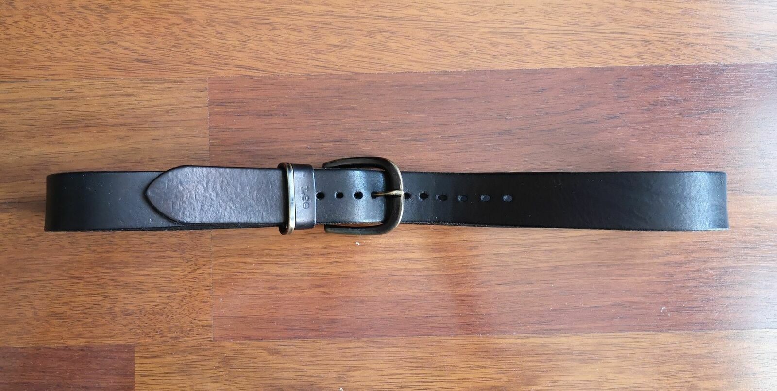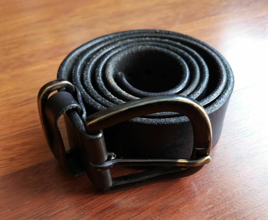 Oferuję stary, wykonany z grubej skóry pas Lee z lat 90/00. Jego długość (skóra) to 110; z klamrą 115,5 a szerokość 3,7 (cm). Dziurki mieszczą się w przedziale od 85,6 do 101 (cm). Jego stan oceniam na więcej niż dobry.Zainteresowanych proszę o wiadomość lub podanie numeru telefonu - odzwonię.